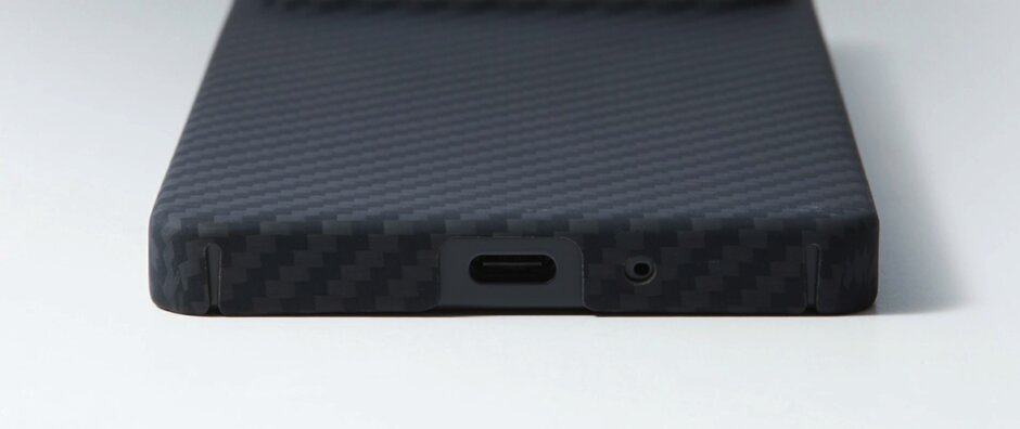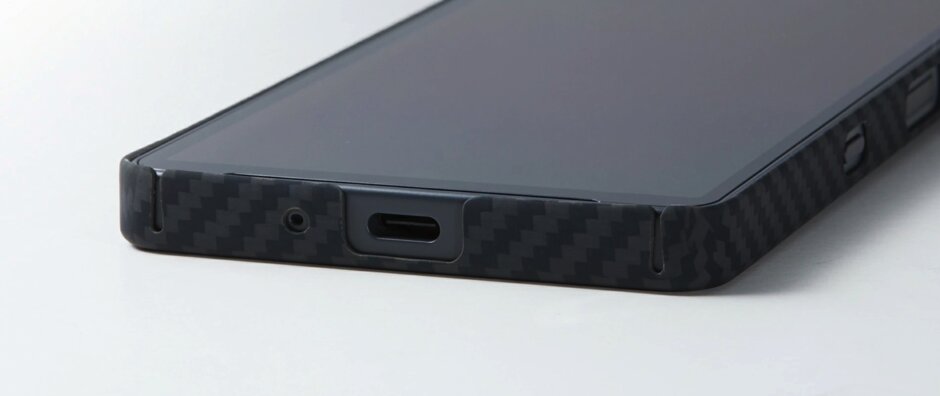 外周全体をしっかりとカバーしつつ、ボタンの操作性やUSB-Cコネクターの脱着を考慮して調整されたカットライン。滑りづらくサラリとした肌触りに汚れの付きにくい表面処理など、長きにわたりアラミド繊維でケースを作り続けてきたディーフのノウハウが詰まっています。もちろん、4G, 5Gを含むデータ通信、通話、NFC通信、モバイルSuicaなど使用上の影響はありません。