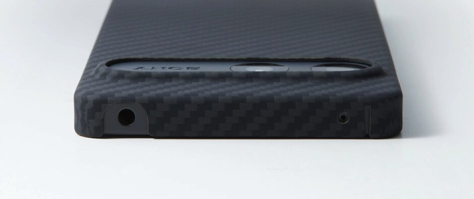 大きくデザインをアップデートしたXperia 10 VIIにフィットするよう、立体成型と絶妙なカットラインでデザインをしました。また、カメラ部分も周囲をしっかりとカバーし、引っかかりにくいスムーズなデザインです。指紋認証センサーを兼ねた電源ボタン部とUSBポート部、ハイレゾに対応したイヤホンジャック周辺については、様々なUSBコネクターやハイエンドヘッドホンの大型プラグにも対応するように開口処理を施しています。