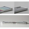 装着したパンパーがスマートフォン本体よりも盛り上がっているため、置いてもディスプレイや背面がテーブルに直接触れることがなく、すり傷もつきづらくなっています。