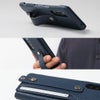 指を入れ、しっかりと本体を持つことができるようになるベルト付。縦長のXperia 5のボディをいつでも安心して使うことができます。このベルトは固めなので、さらに引き出せばスマホを横置きした際のスタンドにもなります。