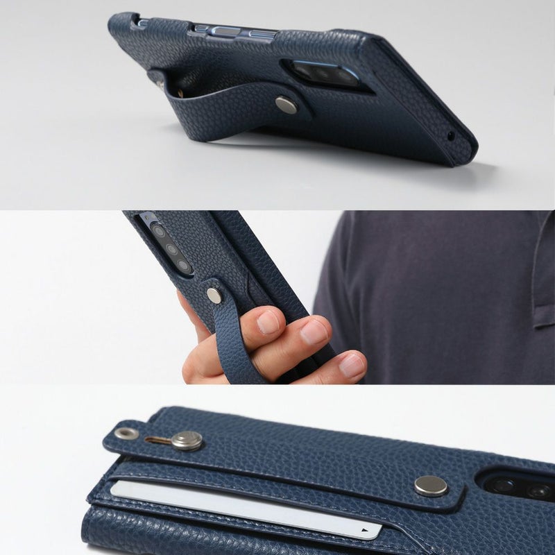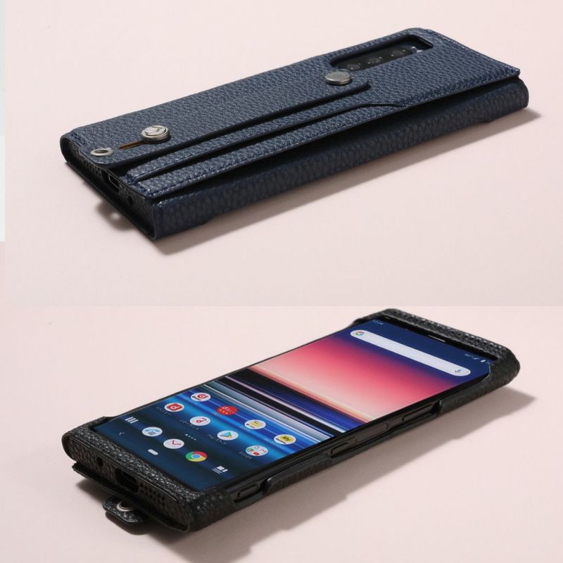 Xperia 5用。肌触りの良いレザーでスマホを優しく包む、