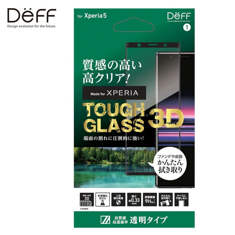 Xperia 5 用 ガラスフィルム「TOUGH GLASS」高光沢 透明タイプ