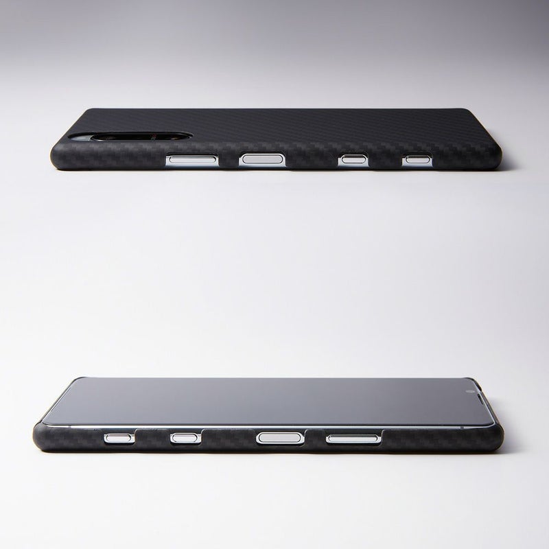 ディーフではアラミド繊維の取扱いに長けたパートナーと共に、理想のケースを求めて追求し続けてきました。その結果、素材の特性を十分に活かしたケースの製品化に成功しました。他のモデルで好評のフラットデザインをこのXperia 5 II用のケースでも再現すべく、フラッシュやセンサー周りは撮影に影響がないようにデザインし、背面の段差を完全に無くしました。