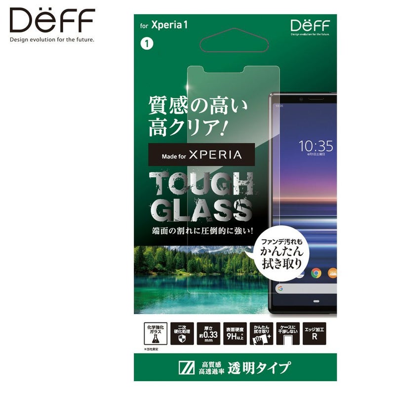 Xperia 1 用 ガラスフィルム「TOUGH GLASS」高光沢 透明タイプ