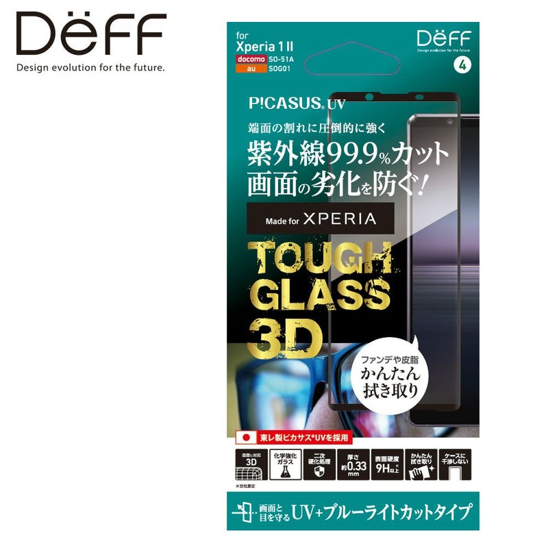 Xperia 1 II ガラスフィルム「TOUGH GLASS 3D」UV+ブルーライトカットタイプ