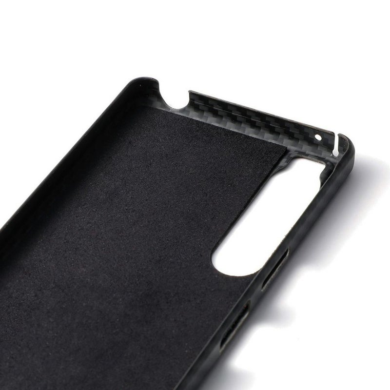 表面には複数のコーティング処理が施されており、防汚処理で汚れが付きにくく、付いても簡単にカーボンファイバーを思わせる美しい織目が高級感を感じさせます。4G, 5Gを含む全てのデータ通信、通話、ワイヤレス充電、NFC通信、モバイルSuicaなどへの影響はありません。