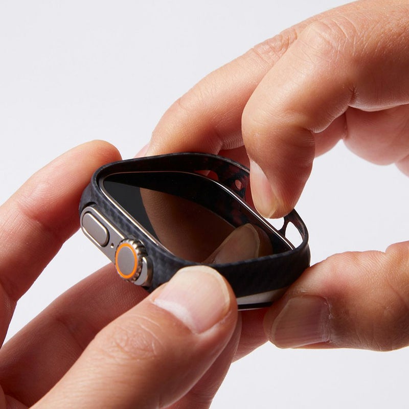 Ultraを保護する最適解として、ディーフは得意としているアラミド繊維を使ったDUROをデザインしました。Apple史上最強というサファイアガラス製のディスプレイをカバーするベゼルから、ボディの裏側に近い部分までApple