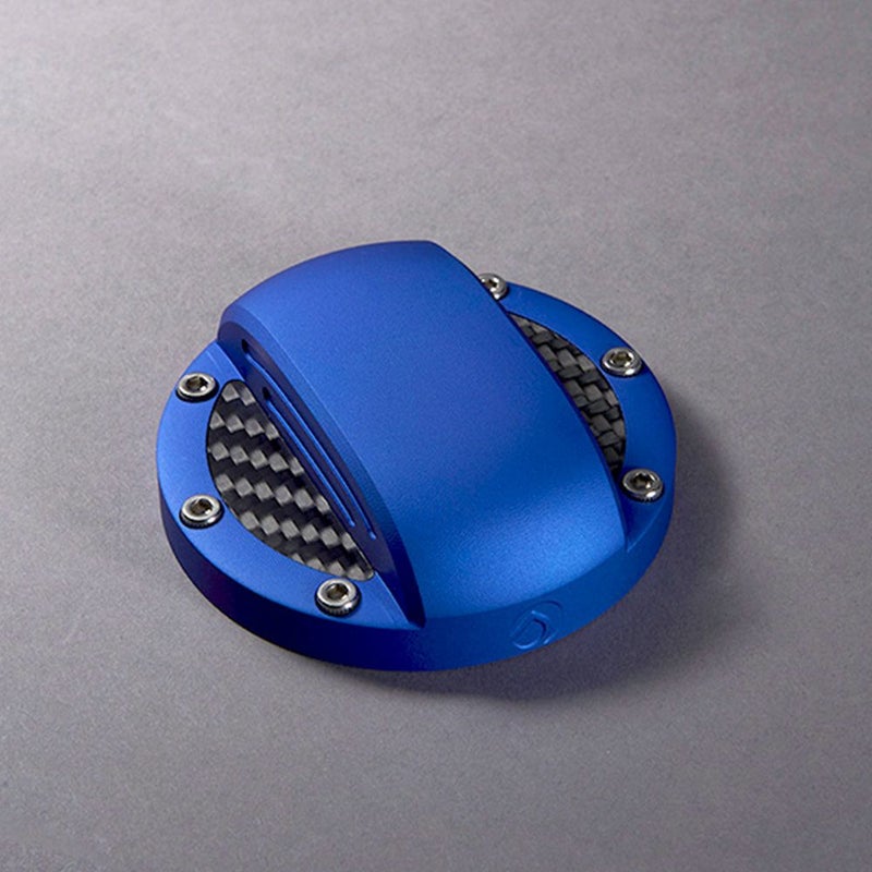 適度にエッジが立てられたデザインはレーシングパーツの雰囲気に近く、射出成形された樹脂部品のような量産品感はありません。それでいながら、トップパーツには東レ製のドライカーボン(3K綾織り)をあしらいエレガントさと軽快感を加えています。表面処理は耐油性に優れた溶酸化(アルマイト)処理が施されています。一般的な手法と比較して深部までしっかりと処理をしているので、容易に色落ちや変色するようなことはありません。また、カラーの明度や彩度を僅かに落とすことで、落ち着いたトーンに仕上げてあります。