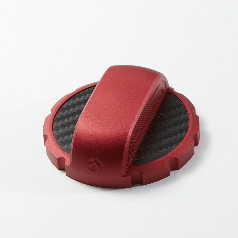 適度にエッジが立てられたデザインはレーシングパーツの雰囲気に近く、射出成形された樹脂部品のような量産品感はありません。それでいながら、トップパーツには東レ製のドライカーボン(3K綾織り)をあしらいエレガントさと軽快感を加えています。表面処理は耐油性に優れた溶酸化(アルマイト)処理が施されています。一般的な手法と比較して深部までしっかりと処理をしているので、容易に色落ちや変色するようなことはありません。また、カラーの明度や彩度を僅かに落とすことで、落ち着いたトーンに仕上げてあります。