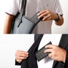 メガネ、サングラス使用時にはケースを折りたたんでポケットにも入れられます。畳んだサイズは奥行き69×幅167×厚み9(mm)。カバンやスーツの内ポケットにもスッキリ収まります。