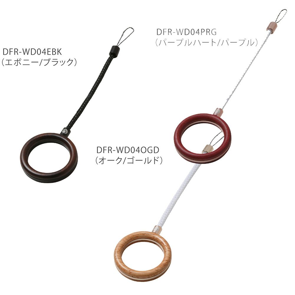 フィンガーリング部とワイヤー部の取付方法を見直し、耐久性を大幅に高めてあります。また、フィンガーリング部もコンパクトにすることで、ストラップが主張しすぎないバランスの取れた大きさとデザインになっています。