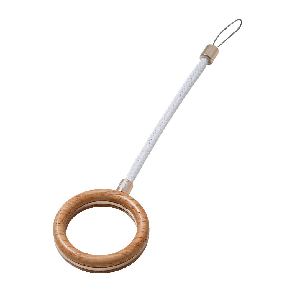 好評を博しているフィンガーリングストラップの3世代目は、機能性はもちろんプレミアム感を高めました。本体のメインフレーム部をアルミニウム製とし、その両側面には「カーボンファイバー」「グラスファイバー」「天然木」の3種類の素材をセレクト。