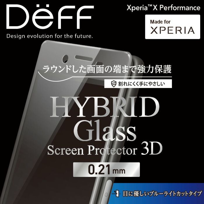 緩やかにラウンドをしたXperia™ X Performanceの液晶ディスプレイにフィットする液晶保護ガラスプレートです。これまでの3Dタイプは縁の強度が低く、ちょっとした衝撃で割れてしまうという課題がありましたが、Deffの開発した3D PET枠を採用した保護ガラスではその心配は不要です。