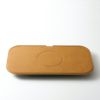 充電器の形状は角が丸くて薄いトレー状。どこに置いても違和感のないスタイリッシュなデザインです。表面素材には柔らかくて肌触りの良いPUレザーを採用。主張しすぎないナチュラルカラーでデジタル機器らしさはありません。裏面も滑りにくい素材なので安定して設置できます。