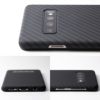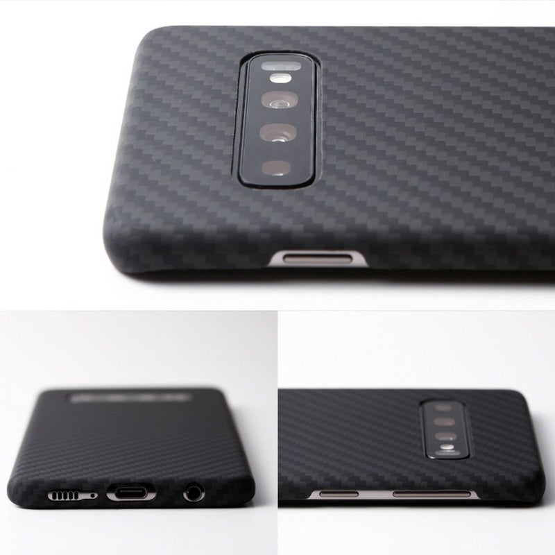 外周すべてを保護する精密成型と、スピーカーホール周りのくりぬく微細加工、そしてアラミド繊維により、ケースは薄く、軽量かつ強靭。また、アラミド繊維の織り目や、特殊コーティングにより滑らかで手にしっとり馴染む肌触りも実現。シンプルさが際立つ、美しい仕上がりになっています。さらに、装着したままワイヤレス充電も可能です。同時発売の全画面3D保護ガラス「TOUGH GLASS for Galaxy S10」との相性も抜群。あらゆる面において、「ディーフクオリティ」のケースです。
