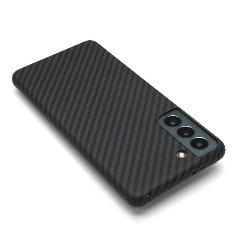 アラミド繊維の特徴を活かしてケースは軽量かつ強靭。さらに、アラミド繊維の織り目や、特殊コーティングにより滑らかで手にしっとり馴染む肌触りも実現。マット仕上げ。特徴的なGalaxy S21のスタイルを際立たせるシンプルで美しい仕上がりになっています。通話やモバイルSuicaの使用はもちろん、5G通信とNFC、Qiの影響もありません。