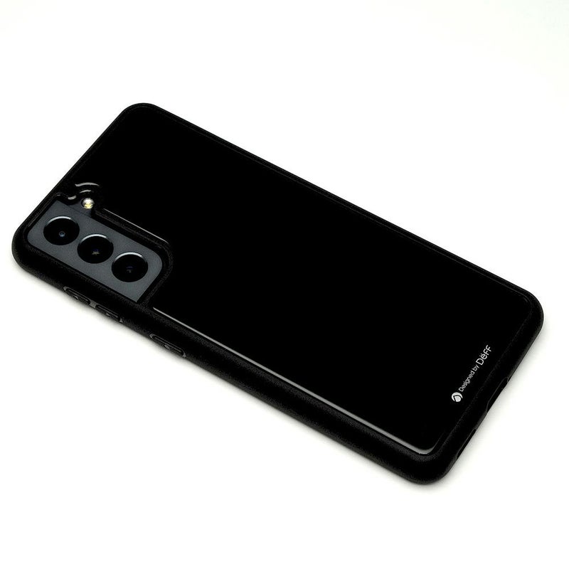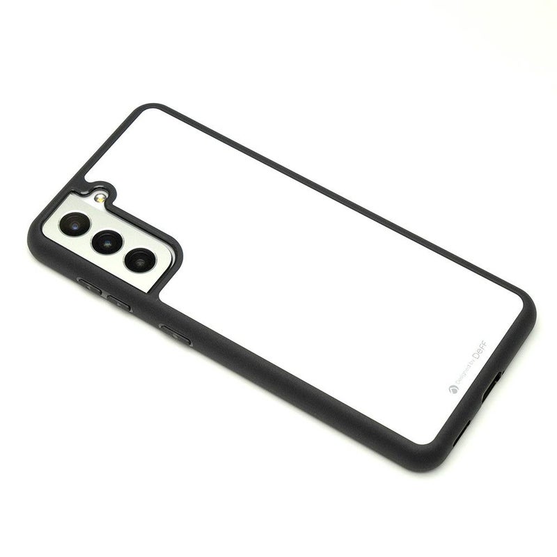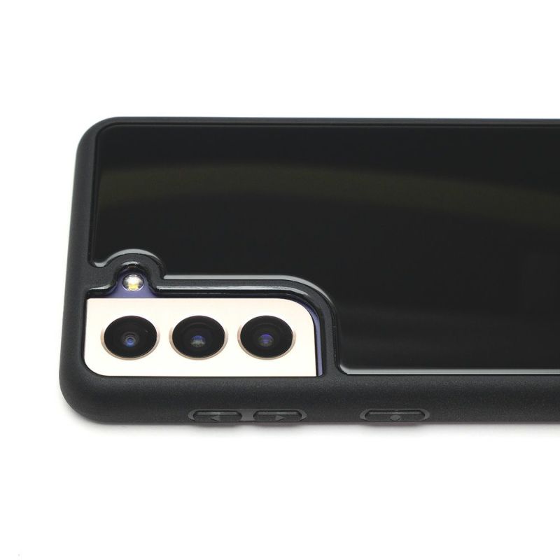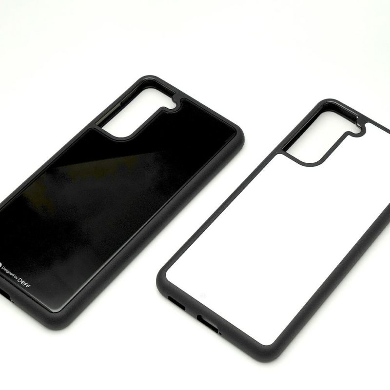 側面のバンパー部分はTPU素材を採用。Galaxy S21本体の曲面に沿った丸みのあるデザインになっており、保護性能と脱着のしやすさを実現。Galaxy S21のシンプルな形状も損なわれません。また側面のTPUはブラックメッキコーティングが施されており、ガラス製の背面と合わせた光沢を持っています。