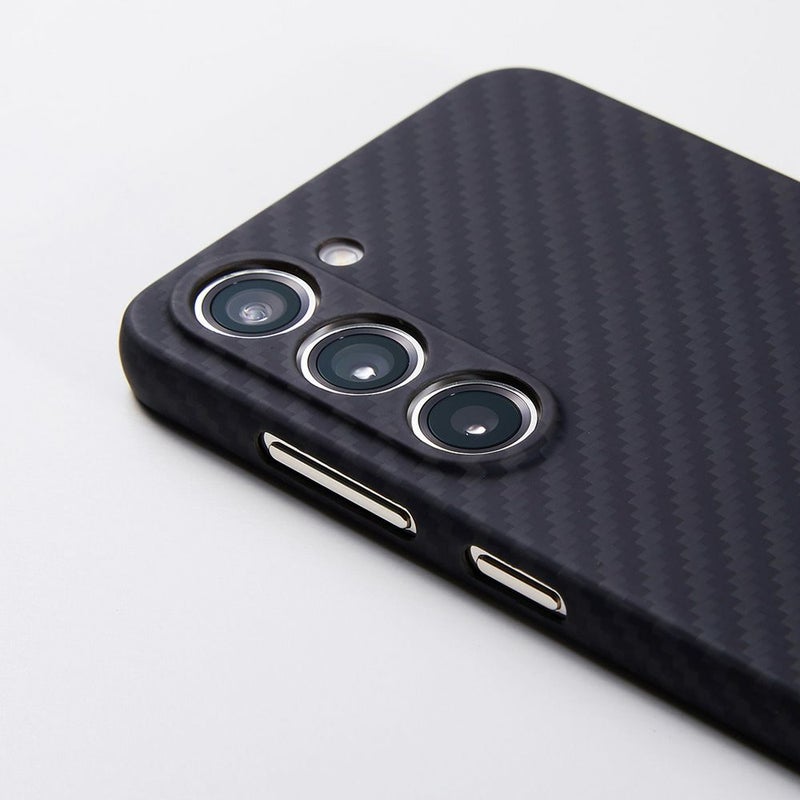 アラミド繊維の特徴を活かしてケースは軽量かつ強靭。さらに、アラミド繊維の織り目や、特殊コーティングにより滑らかで手にしっとり馴染む肌触りも実現。マット仕上げ。特徴的なGalaxy S23のスタイルを際立たせるシンプルで美しい仕上がりになっています。通話やモバイルSuicaの使用はもちろん、5G通信とNFC、Qiの影響もありません。