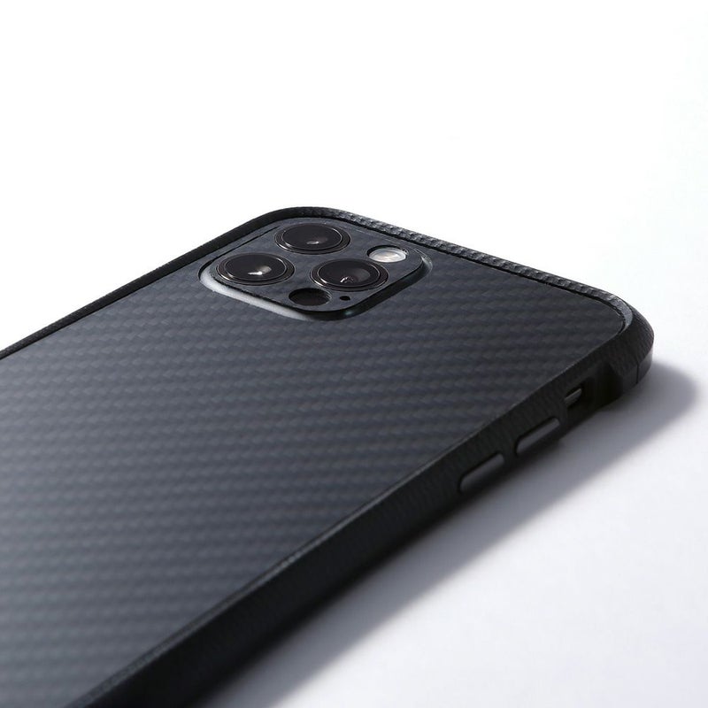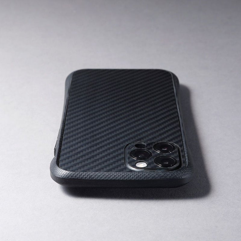 背面全体を保護するアラミド繊維(デュポン製ケブラー(R))を使用したプレートを付属しています。好みに合わせて背面に貼ることで、背面をよりハードなイメージにするだけでなく、擦り傷などからiPhoneの背面ガラスを保護します。NFC、ワイヤレスチャージにも影響しません。