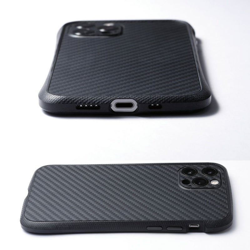 また、背面を保護するアラミド繊維製(デュポン製ケブラー)のカバープレートを同梱しました。バンパーと組み合わせる事で一体感が高まり、擦り傷などがからiPhoneの背面ガラスを保護します。アラミド繊維はNFCやワイヤレス充電に影響しませんので、Apple PayやMagSafe充電が可能です。