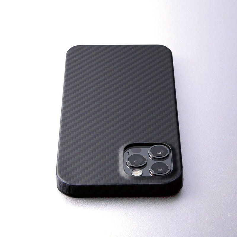 外周すべてを保護する精密成型と、スピーカーホール周りをくり貫く微細加工が施されており、アラミド繊維の特徴を活かした「DURO」は軽量かつ強靭。マット仕上げで、特殊コーティングにより滑らかで手にしっとり馴染む肌触りも実現しています。また、アラミド繊維の織り目を活かしつつ、iPhoneそれ自体の機能美溢れる美しさを際立たせるシンプルで美しい仕上がりになっています。大きなiPhoneでも持ちやすいようにストラップを取り付けることも可能です。もちろん、装着していても通話やモバイルSuicaの使用に影響はありません。
