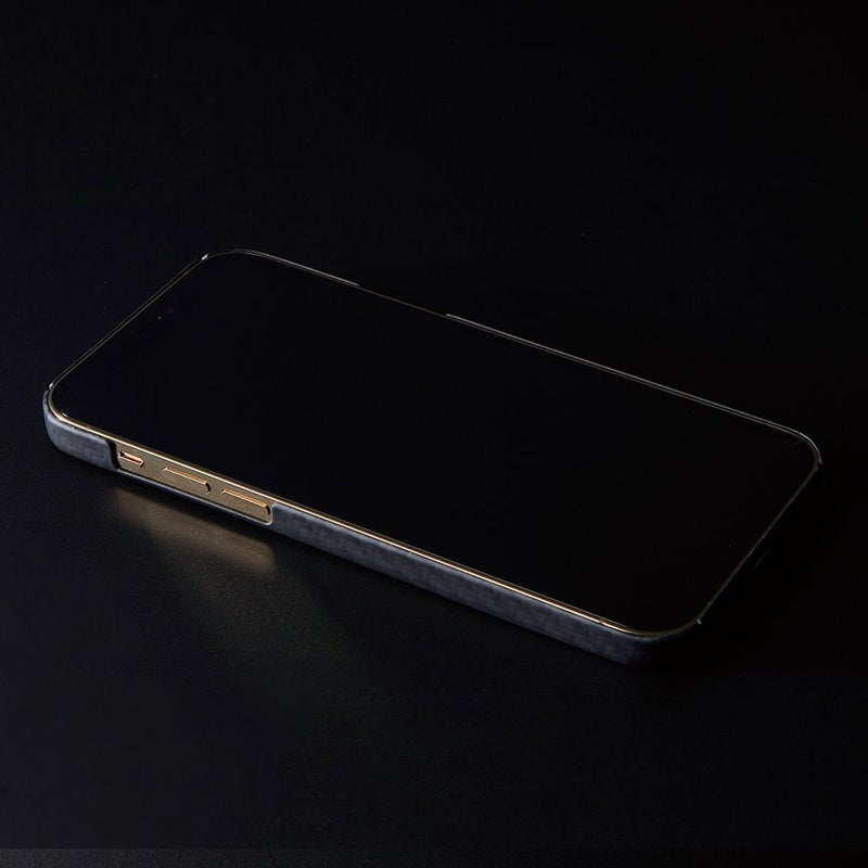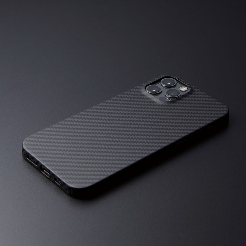 アラミド繊維の特徴を活かしてケースは軽量かつ強靭。さらに、アラミド繊維の織り目や、特殊コーティングにより滑らかで手にしっとり馴染む肌触りも実現。マット仕上げ。特徴的なiPhoneのスタイルを際立たせるシンプルで美しい仕上がりになっています。もちろん、通話やモバイルSuicaの使用に影響はありません。