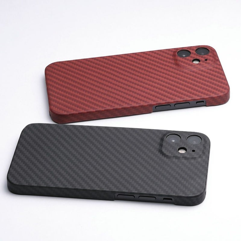 ディーフではアラミド繊維の取扱いに長けたパートナーと共に、理想のケースを求めて追求し続けてきました。その結果、素材の特性を十分に活かしたケースの製品化に成功しました。成形が難しい広い面積ですが、PC材などのフレームを一切使わずに全てをアラミド繊維だけで成形されているのも特徴です。ダメージの多いカメラ周りも全て囲っていますので、安心してお使い頂けます。