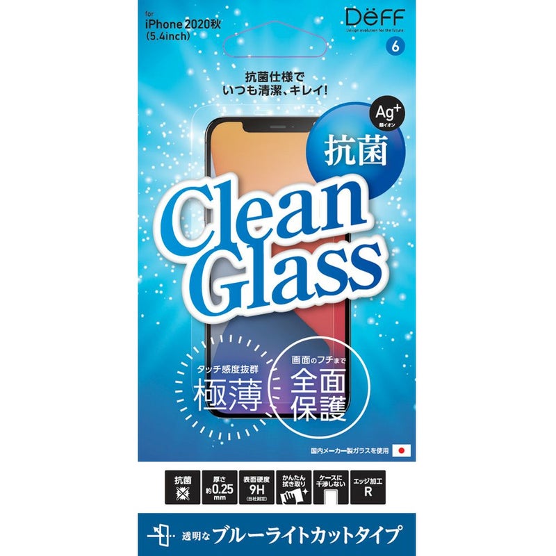 iPhone 12 mini 用 抗菌ガラスフィルム「Clean Glass」指すべり抜群 ブルーライトカット 40%カット