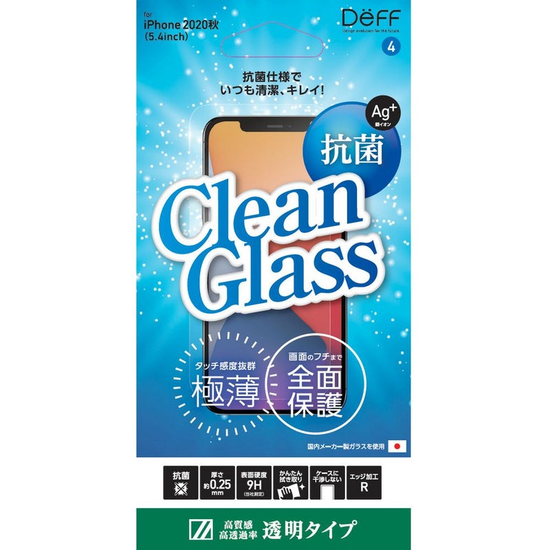 iPhone 12 mini 用 抗菌ガラスフィルム「Clean Glass」透明 高光沢