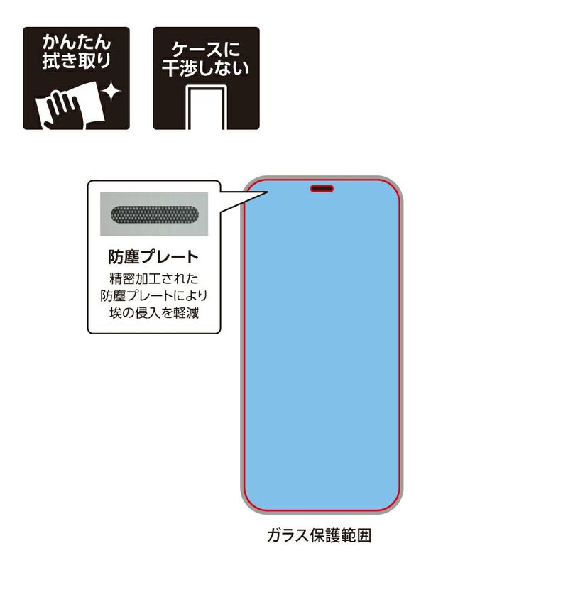 スピーカー穴部分に防塵プレートを配しており、気になるホコリがiPhoneのスピーカー穴に溜まりにくくなっています。もちろん、これまでの製品と同じく、表面には指滑りが心地よくなる特殊コーティングを施しています。この多層処理により皮脂や化粧品などが付着しても簡単に拭き取ることができ、コーティング機能が長持ちします。