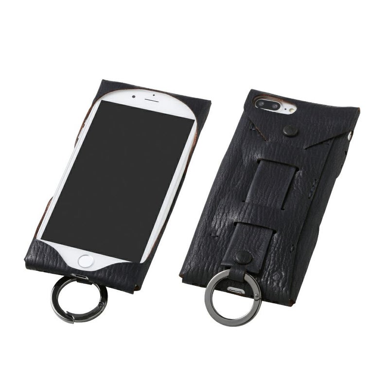 革が持つ自然な風合いを最大限に活かすため、樹脂フレームなどの素材を使用せず、革のみでしっかりと固定できるようデザインされています。さらに使い勝手を高めるために、背面に大きなフィンガーベルトとスチール製のリングを組み付けました。大画面化をしたスマートフォンを安定した状態で持つために指を通したり、リングに好きなストラップを組み合わせたりと自由にカスタマイズできます。