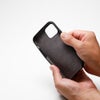 ポリカーボネイトとシリコンを一体成型した「CRYTONE」は、iPhoneをしっかり保護し、持ちやすい適度な硬さを実現しました。外部のシリコンは非常に薄く仕上がっているだけでなく、特殊なコーティングにより、滑らかな感触で手に馴染みやすく、経年変化しにくい仕様になっています。ケースの内側に貼られたマイクロファイバーが、iPhoneの背面、側面をやさしく保護します。
