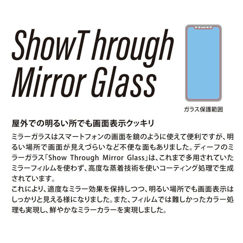 「Show Through Mirror Glass」は、ディスプレイの保護はもちろん、画面オフの時にディスプレイを鏡としても使えるようにするガラスです。高度な蒸着技術によるコーティング処理により、一般的なミラーフィルムでは表示が見えづらくなっていた屋外などの明るい場所でも、しっかりはっきりディスプレイが見ることができます。