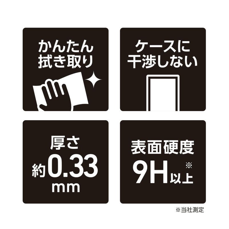 表面処理は多層コーティングが施されており、気持ちの良い指滑りを実現しました。格別の操作感を実感できます。また、汚れにも強く、指の脂や化粧品などが付着しても軽くひと拭きで綺麗に拭き取れます。万が一割れても、破片が飛散したり指に刺さることのないよう、特殊なフィルムで飛散防止処理が施されています。