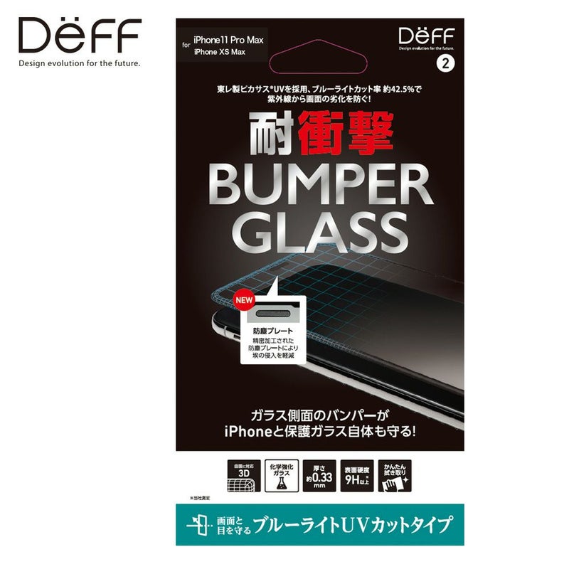 iPhone 11 Pro Max 用 ガラスフィルム「BUMPER GLASS」UV+ブルーライトカットタイプ