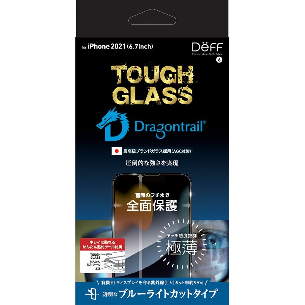他の画像を見る iPhone 13mini用, 16e/14/13/13Pro共用, 13ProMax用 全画面保護 AGC DragonTrail 割れ難い 通常の6倍の強度 タフガラス ブルーライトカット メール便可 TOUGH GLASS for iPhone 13 Series (ブルーライトカット) 店内全品 ポイント10倍! ¥ 999 税込 〜 ¥ 税込 お気に入りに登録する
