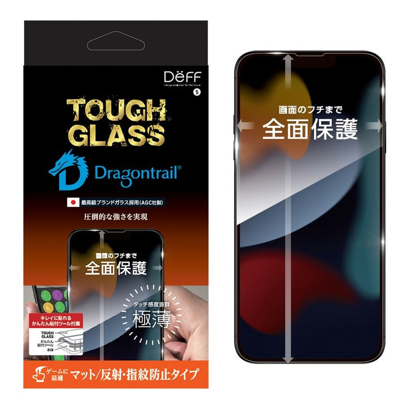 iPhone13 / 13 mini / 13 Pro / 13 Pro Max 用 全画面保護 AGC DragonTrail 割れ難い 通常の6倍の強度 タフガラス マット メール便可 TOUGH GLASS for iPhone 13 Series (マット・指紋防止)