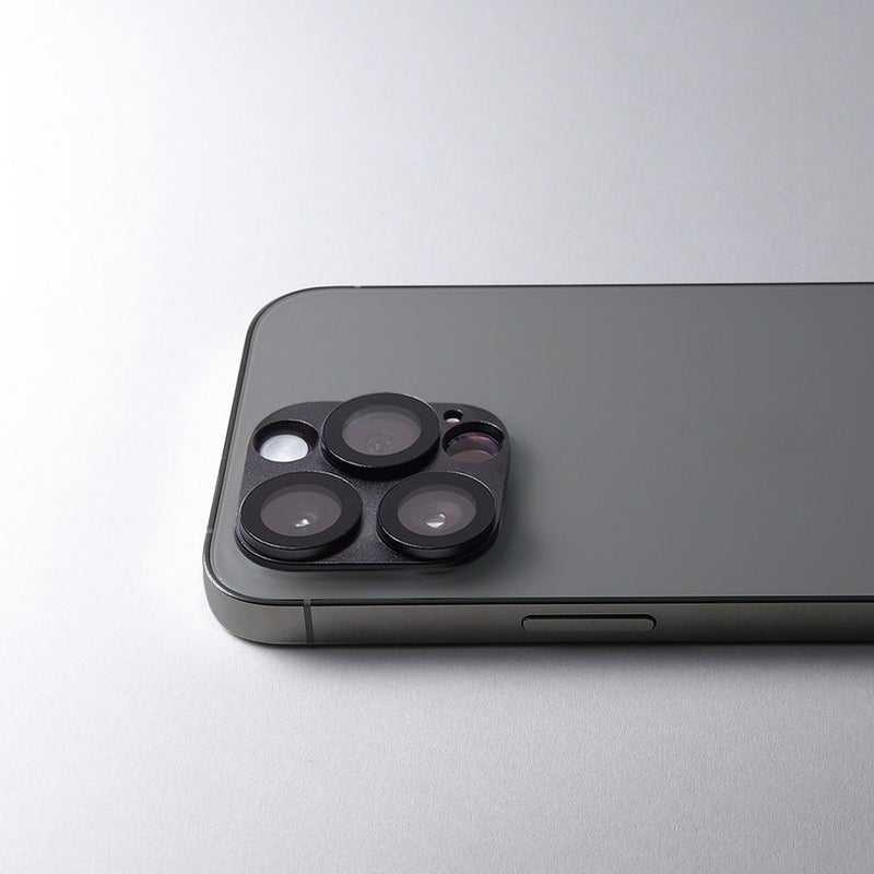 本体はひとつひとつ削り出したアルミニウム合金製。強靱なボディはiPhoneの精密なカメラユニットを外部の衝撃から守ります。ガラス部分はAGC製ガラスを高精度にはめ込みました。カバーガラスとレンズの隙間は0.1mm以下に抑え、撮影時の光学的な影響を最小限度に留めるよう調整しています。
