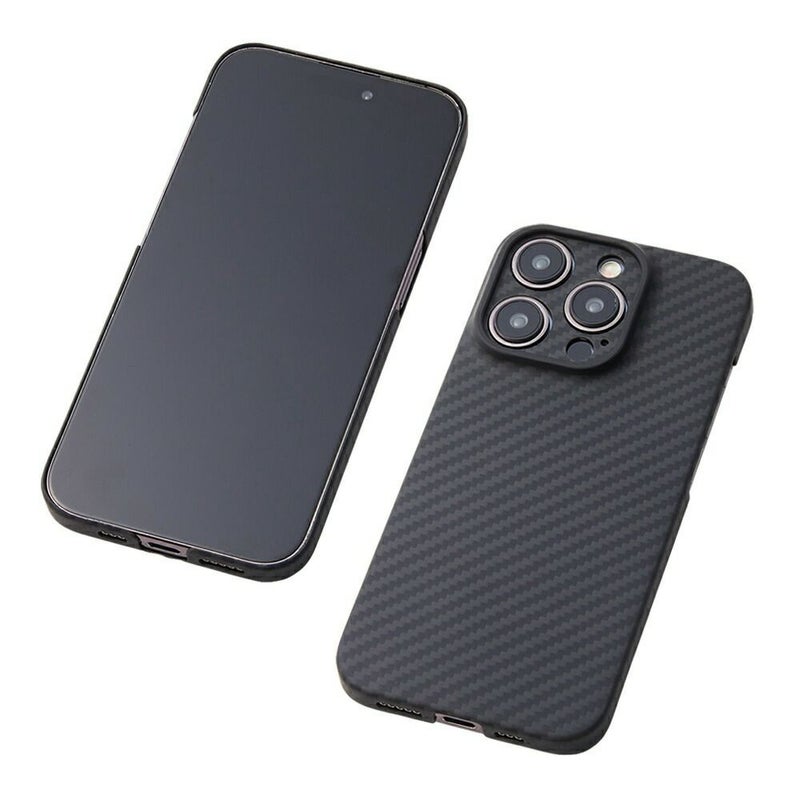 同質量の鋼鉄よりも5倍強く、ガラス繊維の半分の軽さという「アラミド繊維」。その中でも世界トップブランドの米国デュポン社製 ケブラー(R)を贅沢に使った特別なケースです。角が絶妙にラウンドしたiPhone 15 Proシリーズのボディ形状にフィットする緻密な成形は装着をすれば自然と一体化します。その製造工程はドライカーボンファイバーとほぼ同じ工法で製造されています。