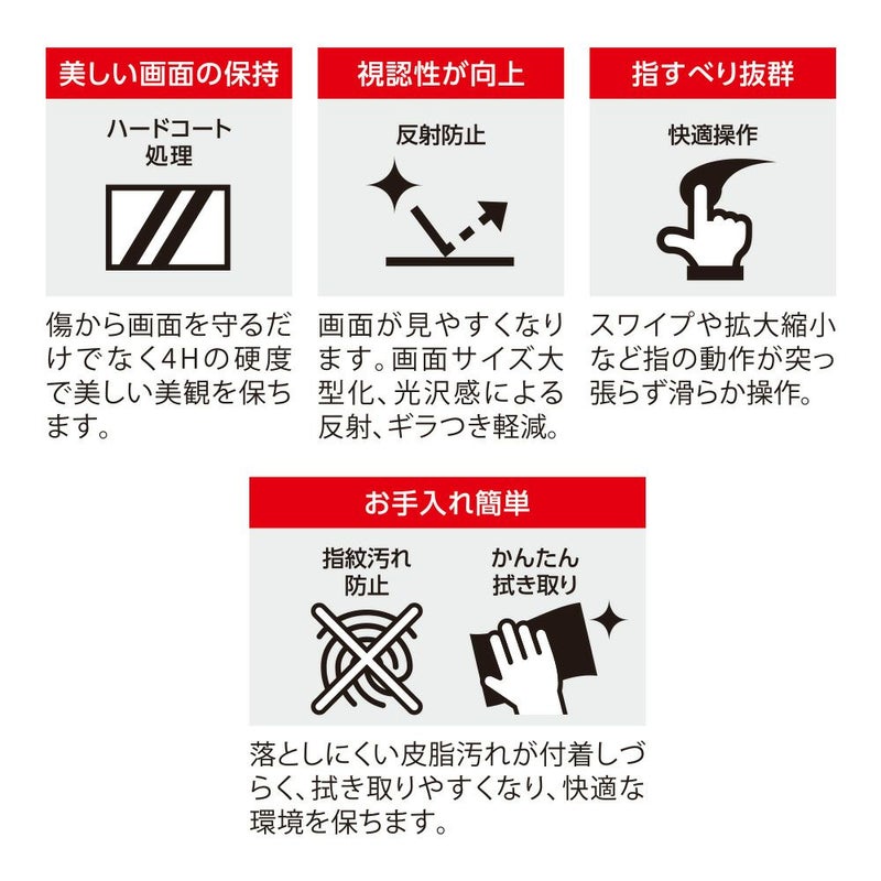 ● 指紋や皮脂汚れ防止加工、撥水加工、ハードコート加工により、しっかり画面を保護