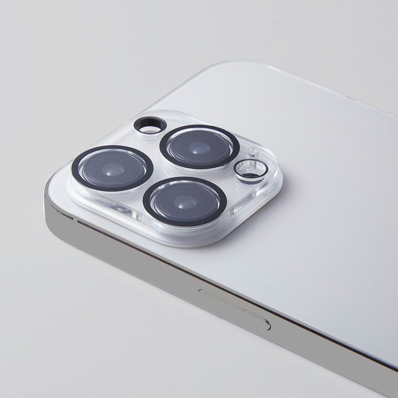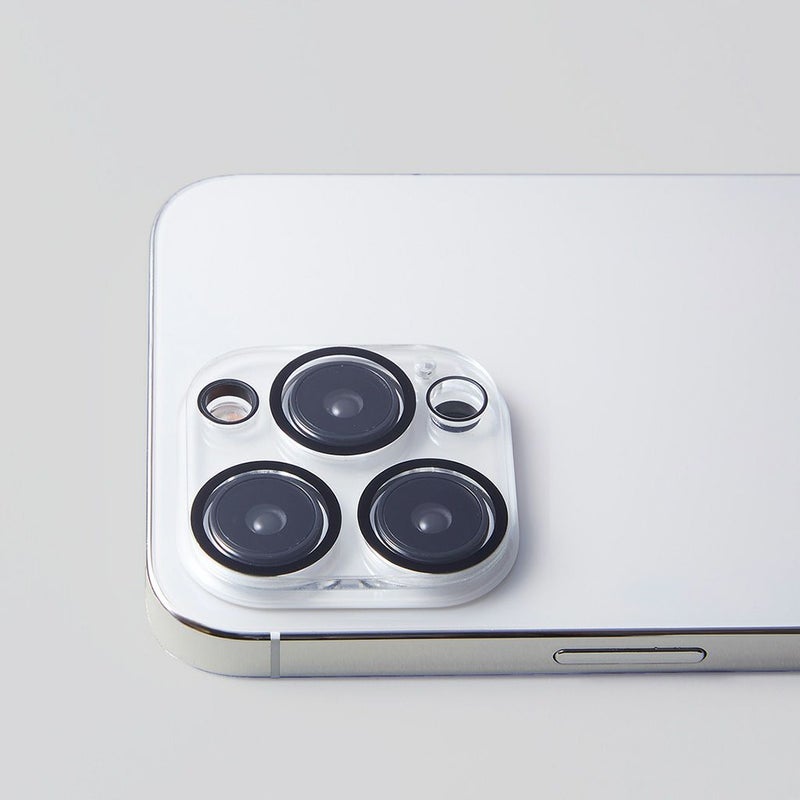 カメラレンズの飛び出し量が多いiPhone 15シリーズですが、背面にあるために机に置いた際にレンズ部に傷が入ったり、レンズ周囲のフレームにダメージを与えてしまうなどの心配があります。こうした問題を解決するのが本製品、アクリルとガラスのクリアパーツ構成によるシンプルで美しいレンズカバーです。レンズトップ部はフラットな0.33mm厚の化学強化ガラスで飛び出したレンズトップ部を全方向から保護をします。