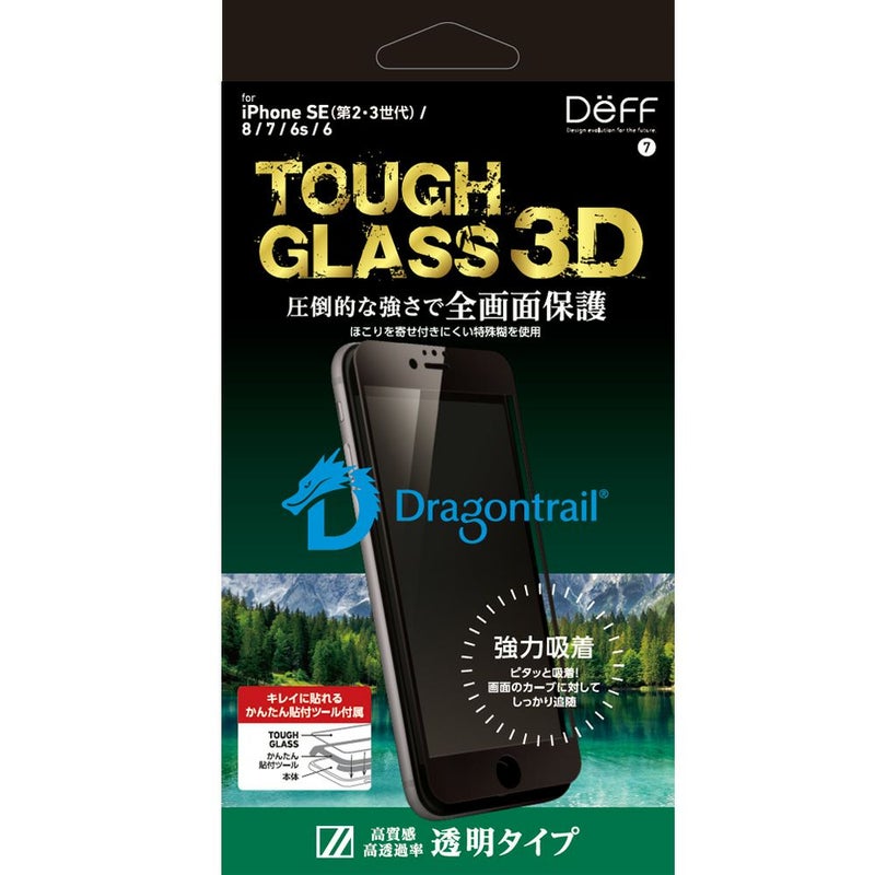iPhone SE(第3世代 / 2世代) 8 / 7 / 6s /6 用 AGC DragonTrail 二次硬化ガラス 強力吸着 ほこりを寄せ付けにくい特殊糊 透明クリア 高光沢 3Dレジン成形