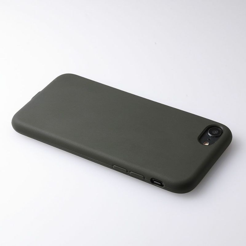 ケースの表面はサラサラとした感触で、防汚コーティングを施したシリコーンに似た感触になっています。TESiVは素材レベルで耐汚性に優れており傷が付きにくく、人体へのアレルギー反応が少ない優しい素材です(※)。似た感触のシリコーンケースと比較して芯材とコーティングが不要なため、薄く軽量に成型できます。また、形状で似ているポリカーボネート製のハードケースよりも柔らかく、適切な硬度なのため、スマートフォンに装着した感触も心地よく仕上げられています。