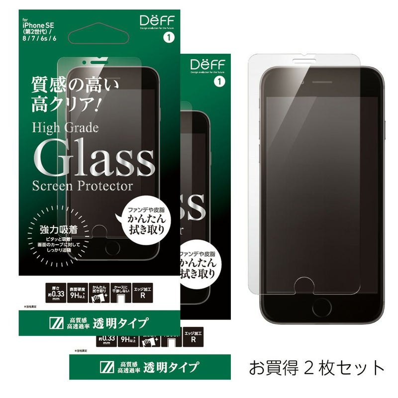 High Grade Glass Screen Protector for iPhone SE(第2世代)透明タイプ お買い得2枚セット