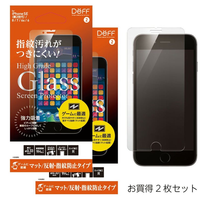 High Grade Glass Screen Protector for iPhone SE(第2世代)マット/ゲームタイプ お買い得2枚セット