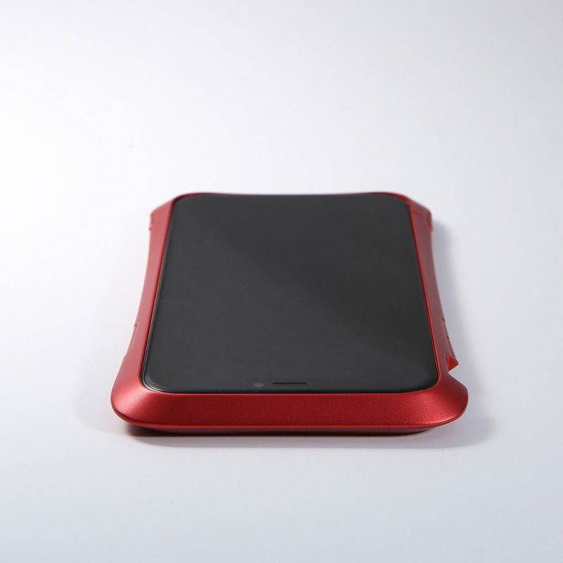 バンパーの内側には厚さ0.5mmのシリコンが組み込まれており、外部からの衝撃をiPhoneに直接伝えない構造です。厚みのあるシリコンは外側から見えない様に、バンパーの内側に切削加工された凹みに埋め込むという手の込んだ作りになっています。液晶面および背面カメラ面を保護する厚みを持たせ、万が一の落下からも最大限に保護をします(※2)。