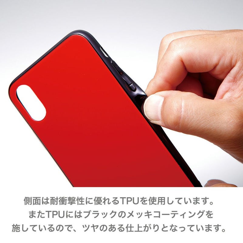側面のバンパー部分はTPU素材を採用。iPhone本体の曲面に沿った丸みのあるデザインになっており、保護性能と脱着のしやすさを実現。iPhoneのシンプルな形状も損なわれません。また側面のTPUはブラックメッキコーティングが施されており、ガラス製の背面と合わせた光沢を持っています。