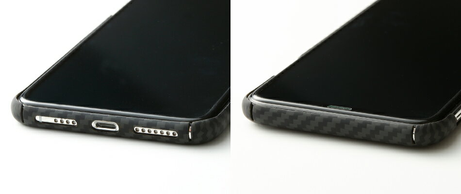 アラミド繊維ならではの薄く軽く強靱なのはもちろん、繊維の織り目を活かした美しい仕上げと端末の外周全てをガードする精密成型。スピーカーホール周りのくり抜き微細加工。どれを見てもディーフクオリティのケースです。