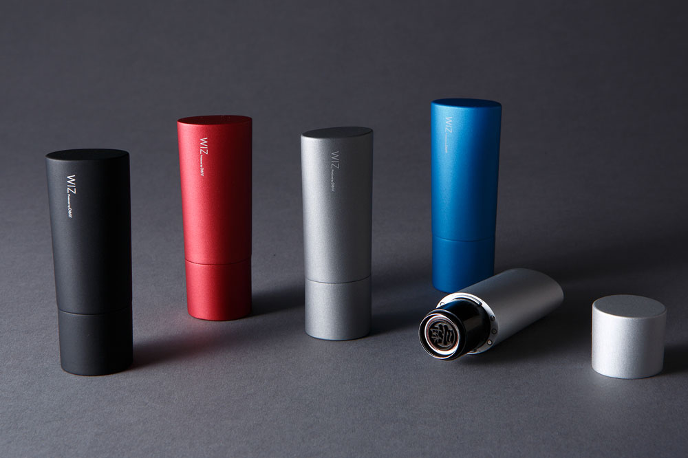 カラーはブラック/ブルー/グラファイト/シルバー/レッドの5色。アルマイト処理されたアルミニウム合金は指触りも滑らかで、高品質な仕上がりになっています。「WIZ Stamp Jacket for Name9 Oval」は、五角形ボディの弊社人気商品、「WIZ Stamp Jacket for Name9 Pentagon」のシリーズです。