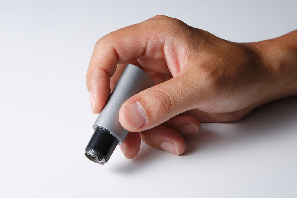 □握りやすい楕円形。キャップはワンタッチで着脱可能